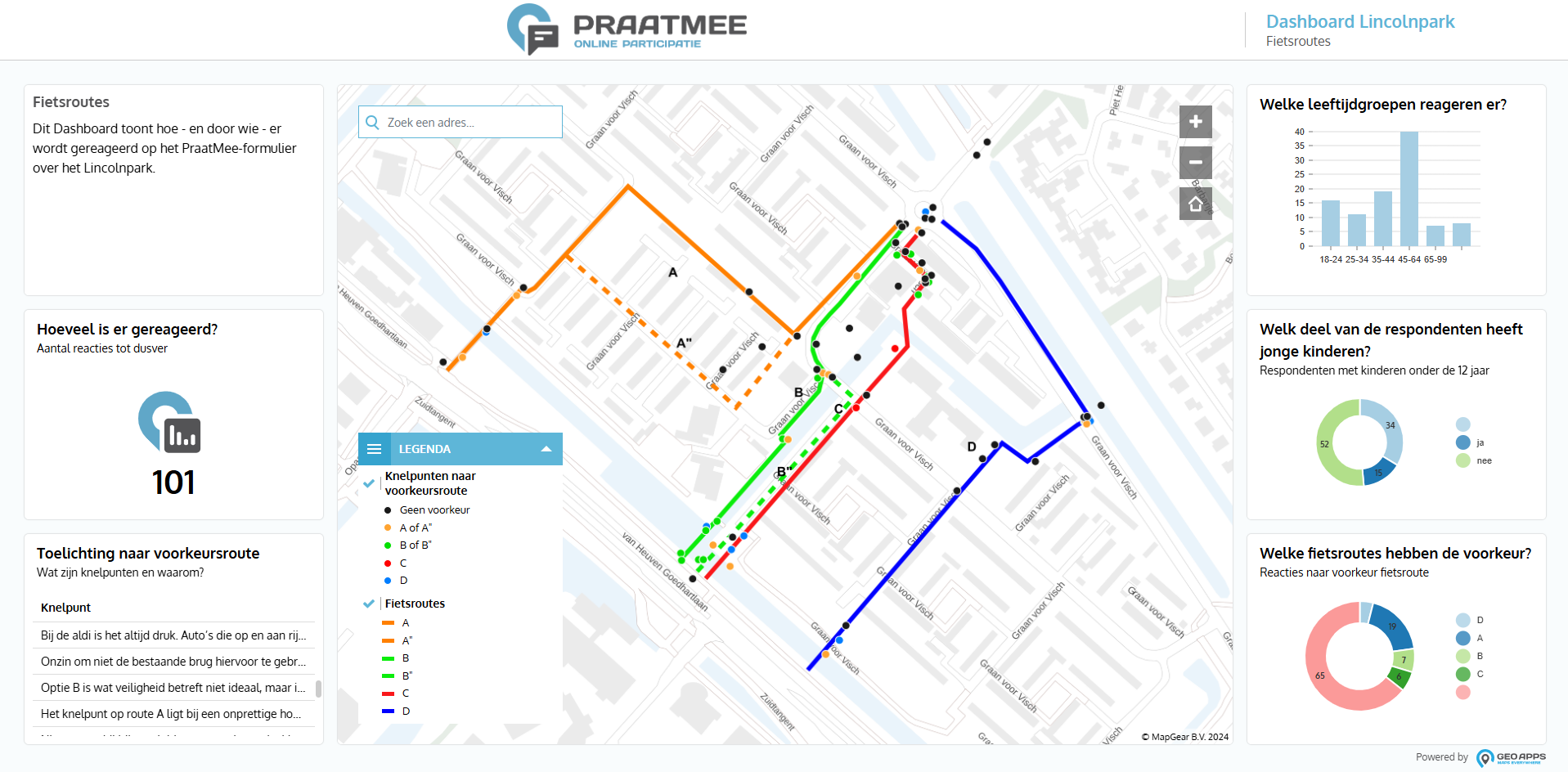 In het geval van Haarlemmermeer werd PraatMee ingezet om de bewoners te vragen naar hun voorkeuren en zorgen over bestaande fiets- en verkeersroutes. Via een eenvoudig toegankelijke online kaart konden inwoners: