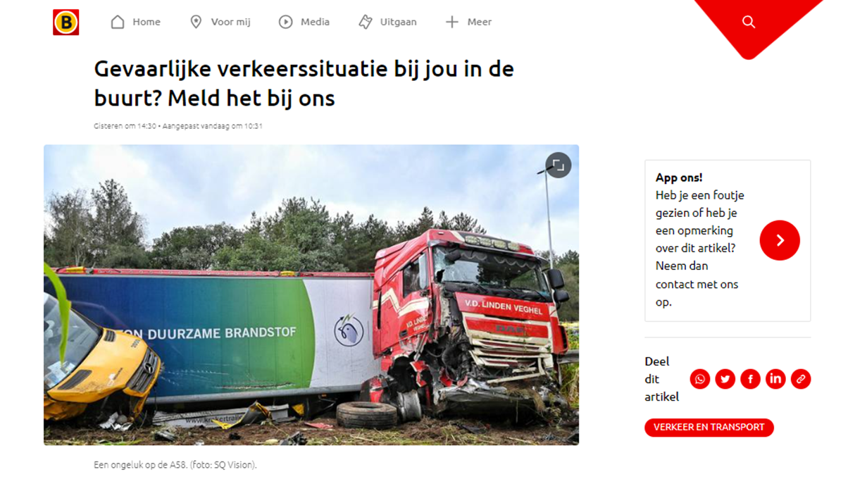 Het artikel van Omroep Brabant over gevaarlijke verkeerssituaties.